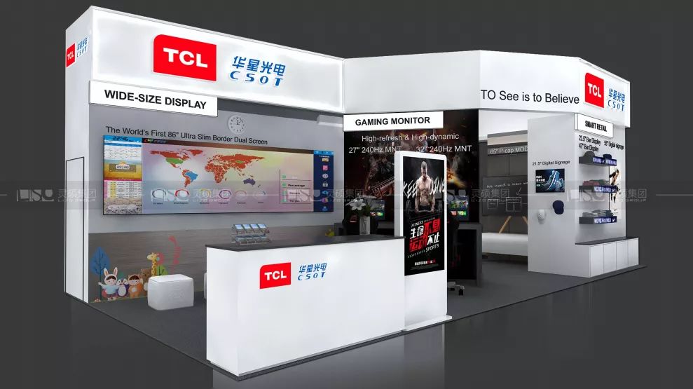 TCL華星光電作為一家專注于半導體顯示領域的創新型科技企業,本次攜眾多高尖新產品亮相展會。靈碩設計團隊以素雅潔白的展臺結構為基礎,合理規劃參觀動線及產品陳列,重點突出華星光電的精湛技術、精致產品、精益制造。