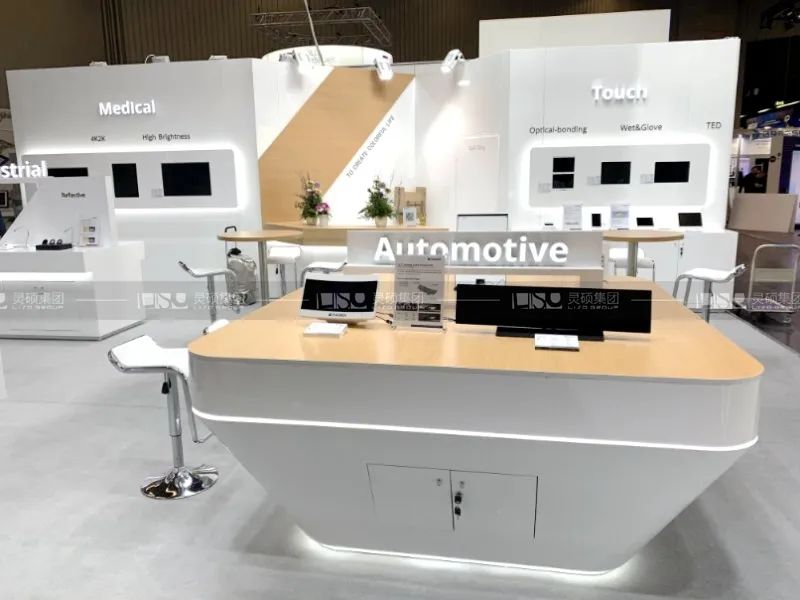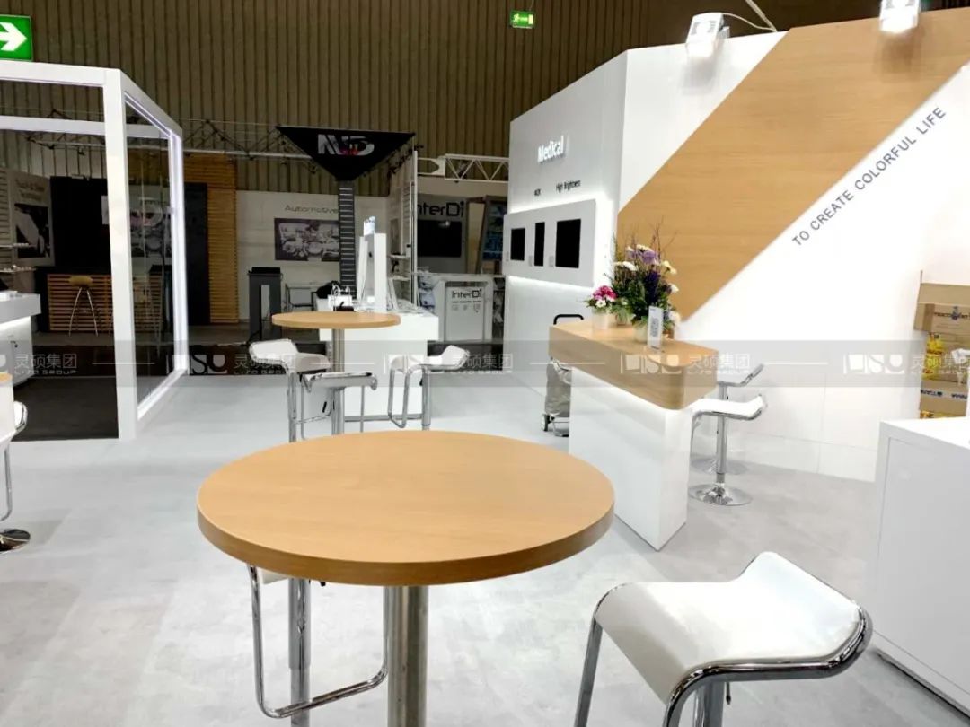 靈碩團隊以清爽白為主格調,配合素雅木紋進行穿插點綴,渲染展臺時尚、高端的氣氛。